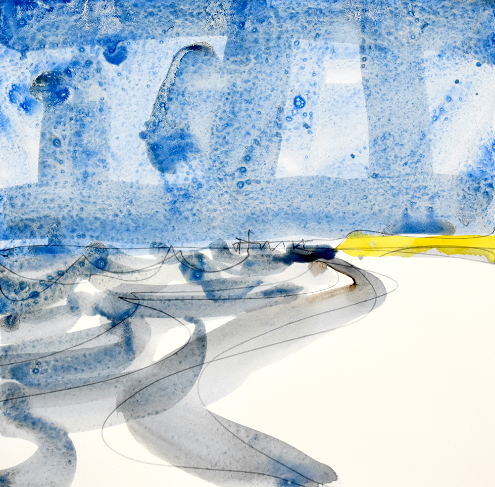 Click to enlarge Southwold beach and the pier on the River Blythe.Exhibited at Watercolour Now, Norwich Castle 2025-26. Watercolour on paper. 25 x 24.5cm Not for saleArchive ref: nwcnbs